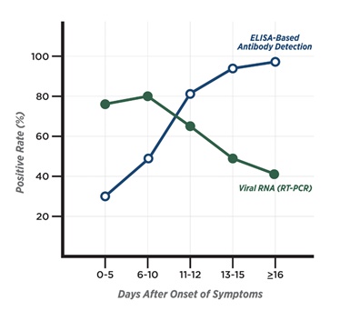 Recent studies have shown that the false negative rate (a negative test result for a patient with COVID-19) range from 2% to as high as 37%. If the virus testing is performed after 8-10 days from the onset of symptoms, a dramatic drop-off in positivity (a positive test result) is observed and false negative rates increase dramatically (see figure1 below).